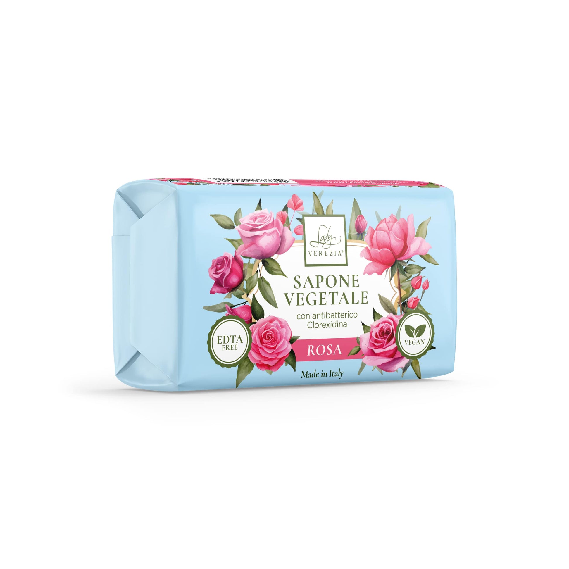 Rosa: Sodium Palmitate, Sodium Palm Kernelate, Aqua, Parfum, Palm Kernel Acid, Sodium Chloride, Glycerin, Chlorhexidine, Tetrasodium Etidronate, Geranyl Acetate, Menthol.